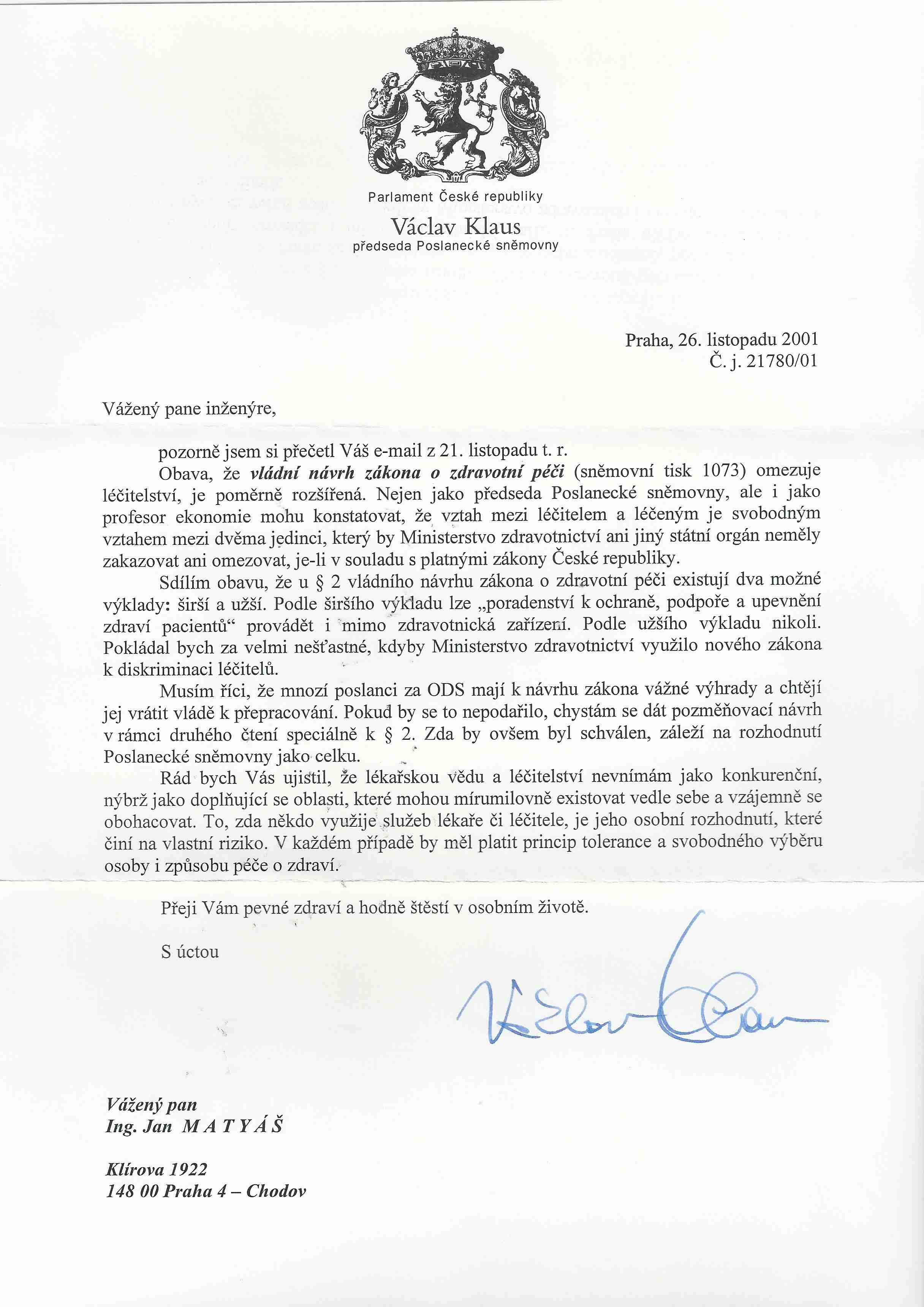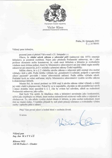 V roce 2001 byl připravován a do parlamentu předán návrh zákona o zdravotní péči, který vymezoval jakoukoli činnost zlepšující zdraví (ad absurdum tedy i spánek) výhradně jen do rukou zdravotníků. Na upozornění Mgr. Čehovského a Homeopatické společnosti došlo k masivnímu vyjádření nesouhlasu, který byl vyjádřen zasláním více než 70 000 nesouhlasných dopisů a následně byl návrh zákona v parlamentu odmítnut. Šlo o historicky zřejmě nejvážnější pokus o zamezení činnosti léčitelů. HS dostala mnoho podporujících dopisů od jednotlivých poslanců v čele s tehdejším předsedou Poslanecké sněmovny Václavem Klausem. viz. odpověď Václava Klause